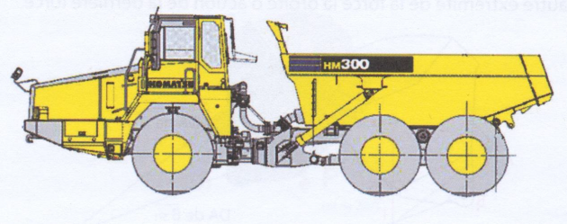 Le poids de la benne et de son contenu sera représenté par l'action P, appliquée, au centre de gravité G et d'une valeur de 35 000 N.