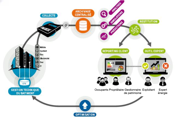 La supervision énergétique mise en place par EneServices, évalue et mesure la performance énergétique et technique d'un bâtiment sur la base de 4 thèmes de suivi : les consommations, le niveau de confort des utilisateurs, les facteurs d'influence (usage du bâtiment, météo, ...) et l'efficacité des équipements. Pour cela, elle utilise des capteurs de température, d'humidité, des compteurs de consommation d'électricité, de gaz ou d'eau permettant d'analyser l'évolution de la consommation énergétique. La maîtrise de cette consommation d'énergie est suivie au travers de l'exploitation globale du bâtiment, tant au quotidien que sur le long terme.
