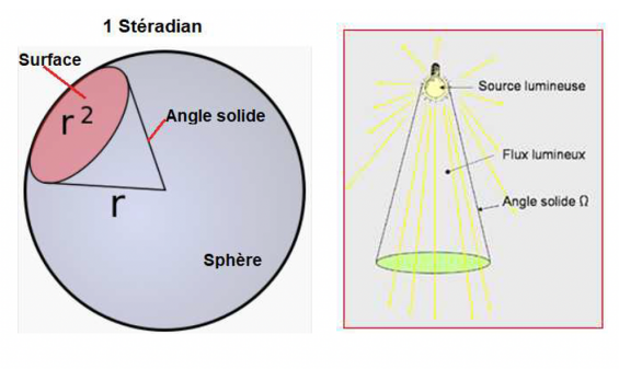 Le flux lumineux « ϕ » est la puissance lumineuse (quantité de lumière) émise par une source lumineuse dans toutes les directions à la fois. Cette mesure est donc utile pour mesurer la luminosité réelle d'une source de lumière « nue ».