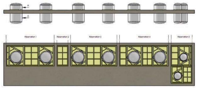Q2. Lister les forces qui s'exercent sur la cuve. (types, directions, intensités, ...)